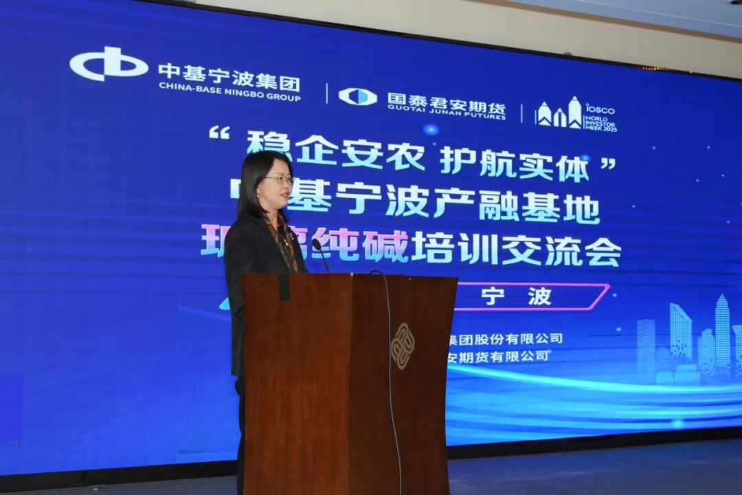 10月24日,由郑州商品交易所发起,中基宁波集团股份有限公司主办、国泰君安期货有限公司协办的“稳企安农 护航实体”玻璃-纯碱产业大会在宁波隆重召开,近百名业内专家及行业代表参加会议,共同探讨行业未来趋势,分享先进实践理念,探索产业发展路径。中基集团副总裁陈静艳出席会议,并作为主办方代表为会议致辞。